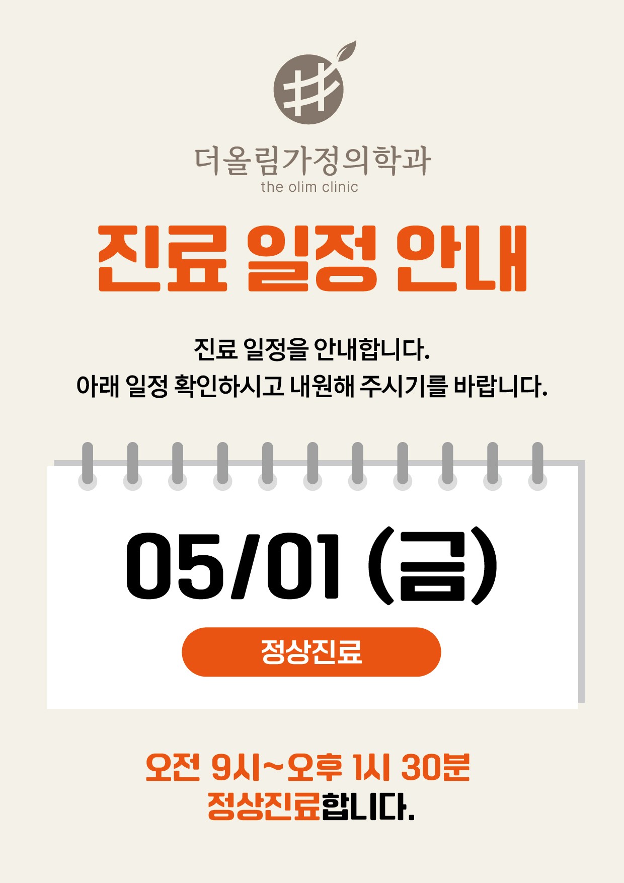 5월1일(노동절)은 정상진료하오니 일정 확인하시고 내원해주세요!